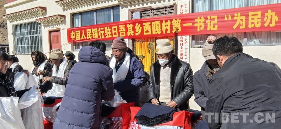 本次活動面向日吾其鄉(xiāng)西嘎、措嘎、普夏、日蘇、央確5個駐村點65歲(含)以上的老年人,各村第一書記提前摸底調(diào)查,精準鎖定幫扶對象,制作慰問對象花名冊?;顒赢斕?,為164人每人發(fā)放了棉被、毯子和藏式圍裙等抗寒物資,為措嘎村村委會購置了一臺用于維修管道和日常停電后短暫供電的發(fā)電機,累計金額達57280元,為群眾送上了冬日里的問候與溫暖。