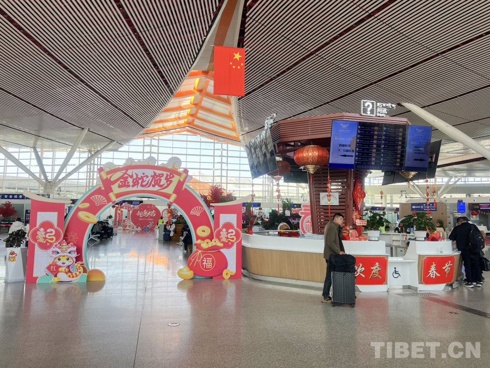 中國(guó)西藏網(wǎng)訊 新春的樂章即將奏響,拉薩貢嘎國(guó)際機(jī)場(chǎng)盛裝以待,用別出心裁的春節(jié)景觀設(shè)計(jì),為過往旅客呈上一場(chǎng)充滿新意的新春盛宴,讓節(jié)日的喜慶在旅途中盡情流淌。(中國(guó)西藏網(wǎng) 記者/趙振宇)