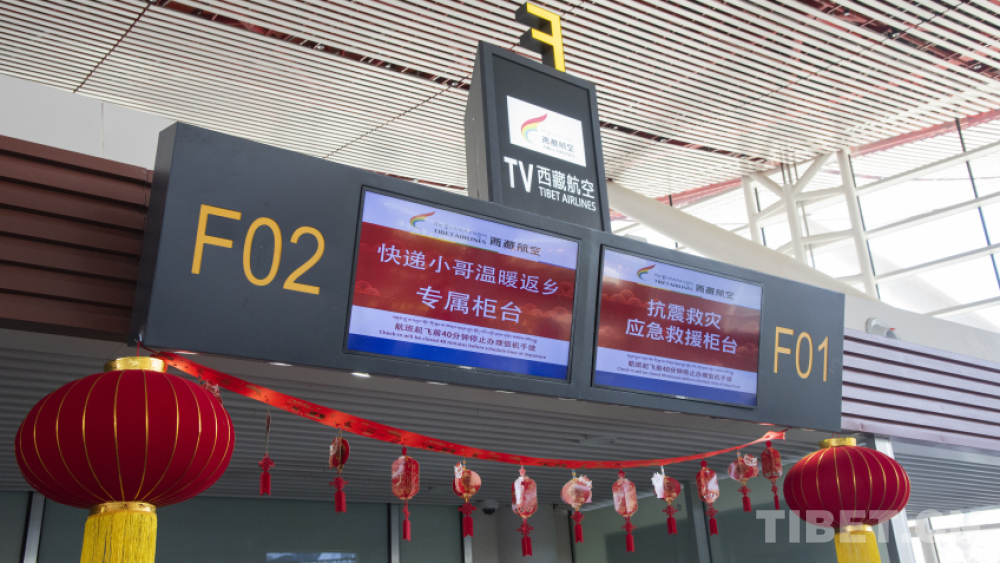 圖為西藏航空開設的快遞小哥溫暖返鄉(xiāng)專屬柜臺和抗震救災應急救援柜臺 攝影:趙振宇