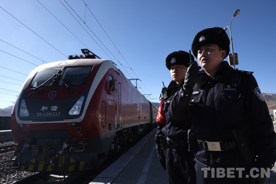 圖為天峻站鐵路民警站好新年崗 攝影:賀瑞明