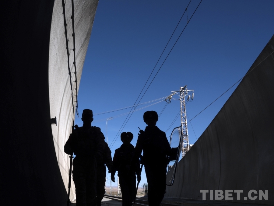 圖為除夕中午,天峻站派出所的民警和武警官兵共同排查關(guān)角隧道