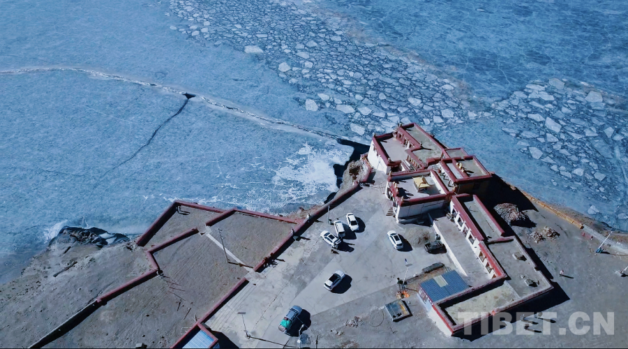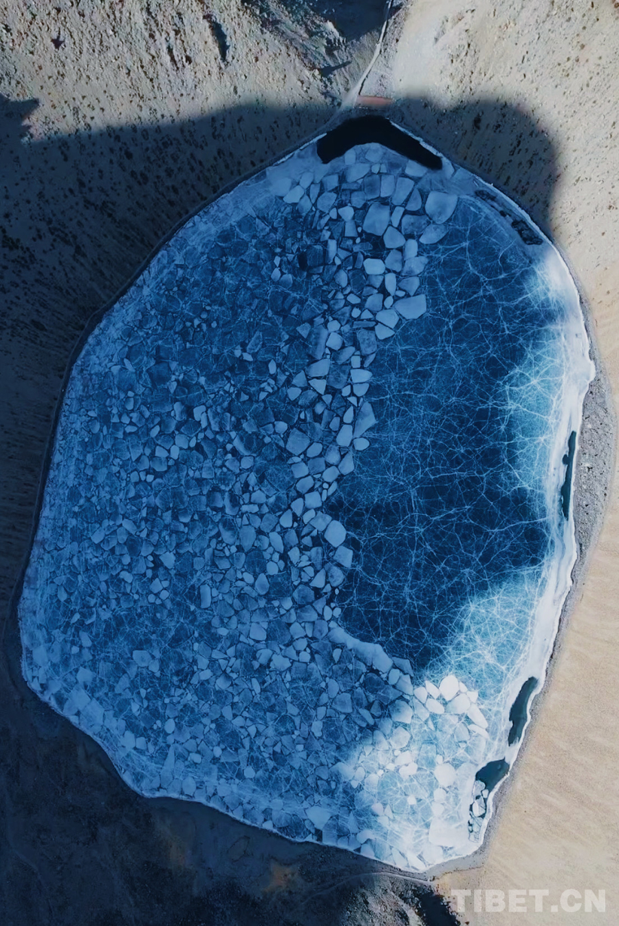 圖為冬日的恰央錯湖面結(jié)冰,湛藍如翡翠,從空中俯瞰如同一個巨大的“盾牌”,十分壯觀,前來打卡的游客更是絡(luò)繹不絕。攝影:德吉卓瑪