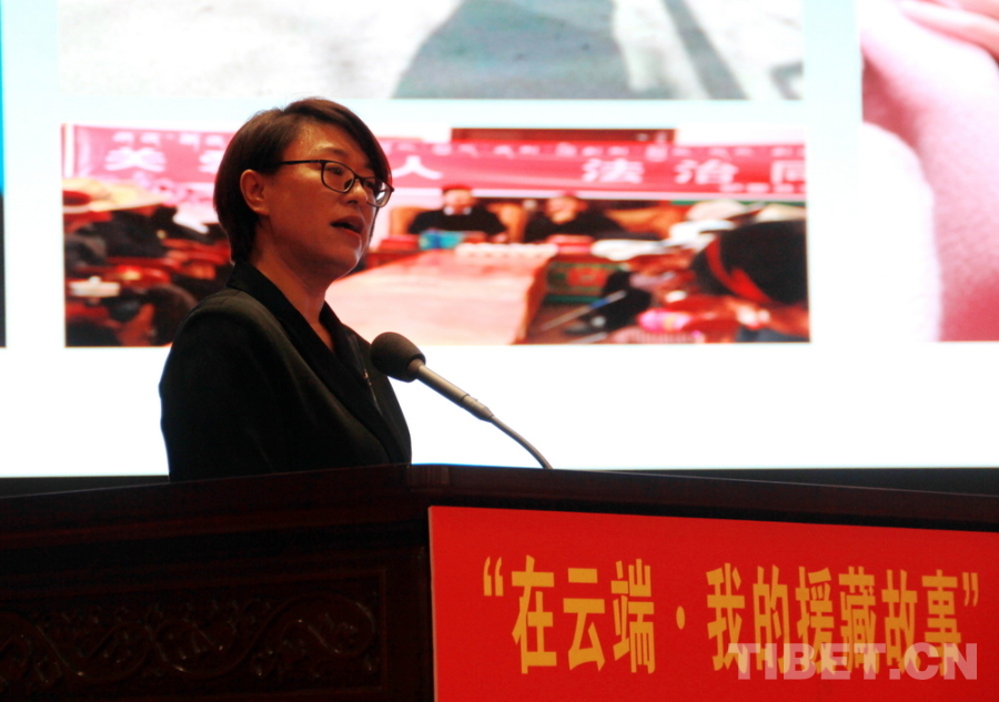 圖為攀枝花市農(nóng)業(yè)農(nóng)村局干部揚秀英講述該局黨組成員、副局長寧秀蓉的援藏故事 攝影:劉莉