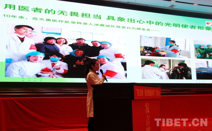 圖為德陽市人民醫(yī)院宣傳部干事彭曉萌講述該院“范天勇援藏醫(yī)療服務隊”的援藏故事 攝影:劉莉