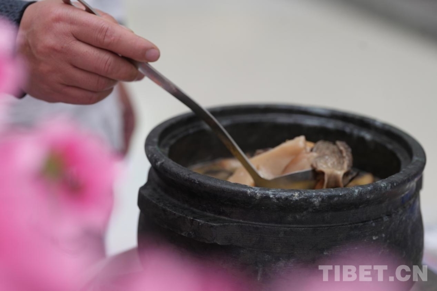 圖為推介會(huì)現(xiàn)場可以品嘗的魯朗石鍋雞 攝影:德吉卓瑪