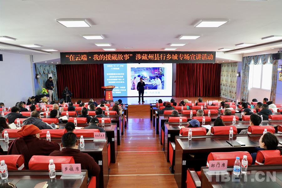 中國西藏網(wǎng)訊 2月27日上午,“在云端·我的援藏故事”涉藏州縣行宣講活動走進四川省甘孜藏族自治州鄉(xiāng)城縣。宣講團隊的七位成員以“金牛幫扶聚云端 巾幗情灑扎溪卡”“那片深愛的土地”“愛心支教行,共筑成長夢——為了使命的遠行”等主題,滿懷深情地向當?shù)馗刹咳罕娭v述他們的故事。