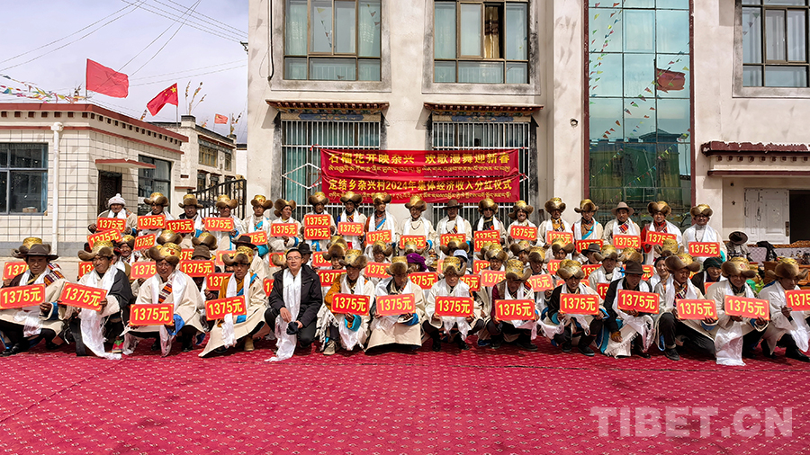 圖為定結(jié)縣定結(jié)鄉(xiāng)雜興村集體經(jīng)濟(jì)收入分紅儀式現(xiàn)場(chǎng)