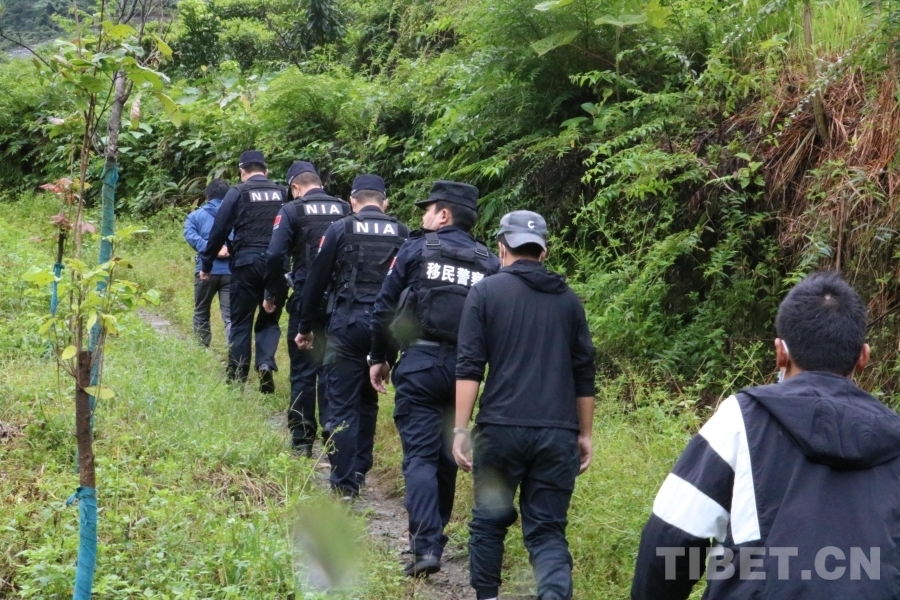 圖為西藏林芝邊境管理支隊背崩邊境派出所民警與群眾開展護林巡邏
