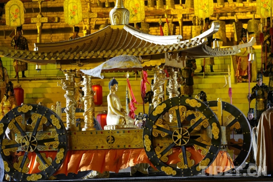 圖為《文成公主》大型實景劇中文成公主入藏,將釋迦牟尼12歲等身像帶到拉薩的場景。攝影:德吉卓瑪