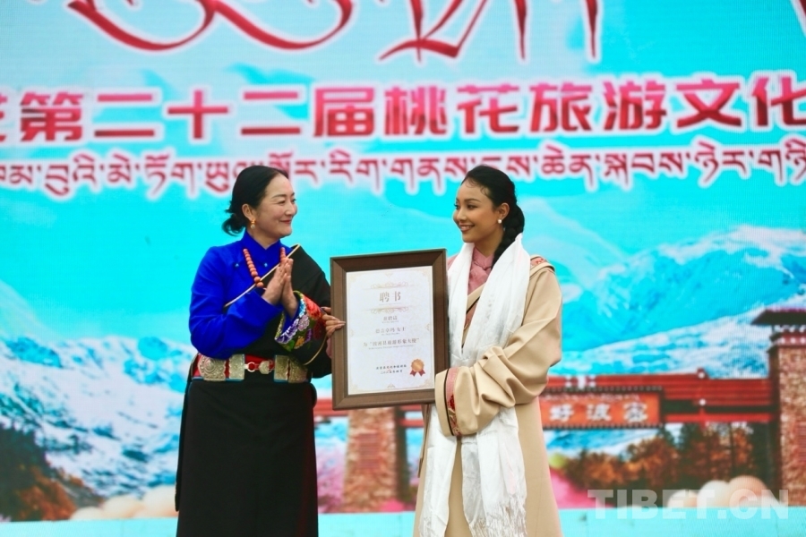 圖為網(wǎng)絡(luò)達人德吉卓瑪被授予波密縣旅游形象大使證書