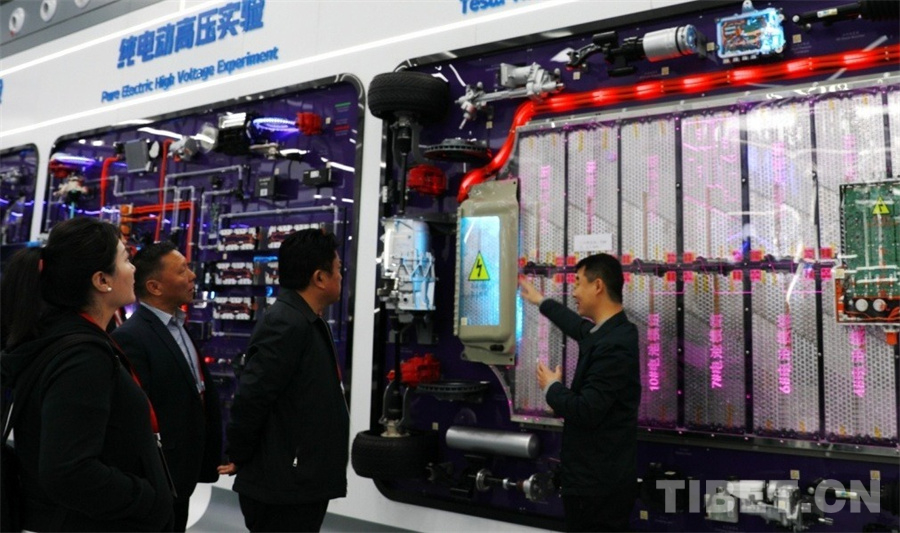 “這是由7104節(jié)電池組成的特斯拉的電池組,它是402伏的高壓電。所以,沒有經(jīng)過專業(yè)培訓(xùn)進(jìn)行電動(dòng)汽車維修會(huì)有一定的危險(xiǎn)性。”北方國際汽車教育展廳、車間負(fù)責(zé)人黨超為到訪的西藏自治區(qū)工商聯(lián)民營企業(yè)家赴京學(xué)習(xí)參觀團(tuán)一行詳細(xì)介紹著墻上展示的電池組。大家聽得津津有味。