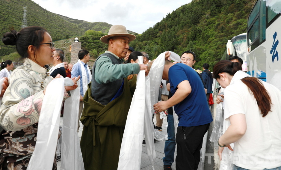 圖為5月15日,部分參加“同心·共鑄中國心”2025阿壩行大型公益活動的醫(yī)務志愿者抵達四川省阿壩州馬爾康市。馬爾康市群眾向醫(yī)務志愿者們敬獻哈達 攝影:劉莉