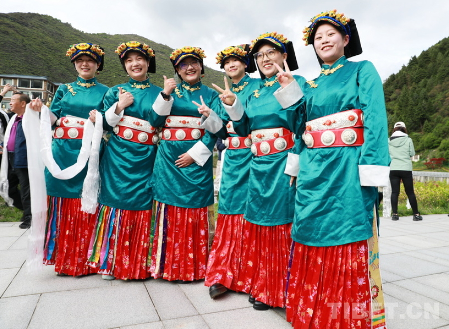 圖為身著嘉絨藏族盛裝的四川省阿壩州女孩們迎接“同心·共鑄中國心”大型公益活動醫(yī)務志愿者們的到來 攝影:劉莉