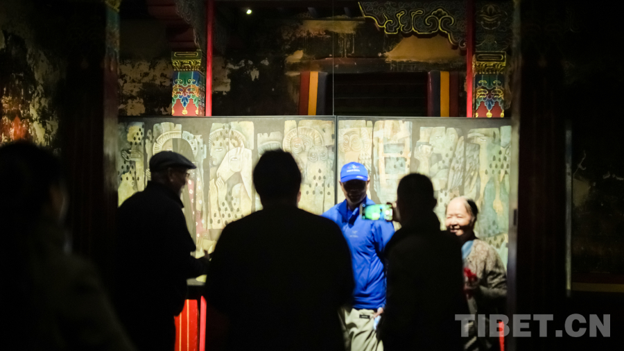 此次展覽中,策展人以“藏地傳統(tǒng)的當(dāng)代轉(zhuǎn)化”為主線,梳理上述不同系列作品,完整呈現(xiàn)出藝術(shù)家的創(chuàng)作脈絡(luò)。展覽標(biāo)題“夢(mèng)瑜伽”,來(lái)自《黑經(jīng)書(shū)》系列作品的創(chuàng)作故事,清代壁畫(huà)環(huán)繞的獨(dú)特古建場(chǎng)域與《黑經(jīng)書(shū)》系列作品于光影間輝映,共同營(yíng)造出西藏藝術(shù)歷史與當(dāng)下交錯(cuò)的鏡像,在搭建橋梁、連結(jié)傳統(tǒng)與時(shí)代精神的同時(shí),也引領(lǐng)觀眾走入高強(qiáng)度的精神性探索。