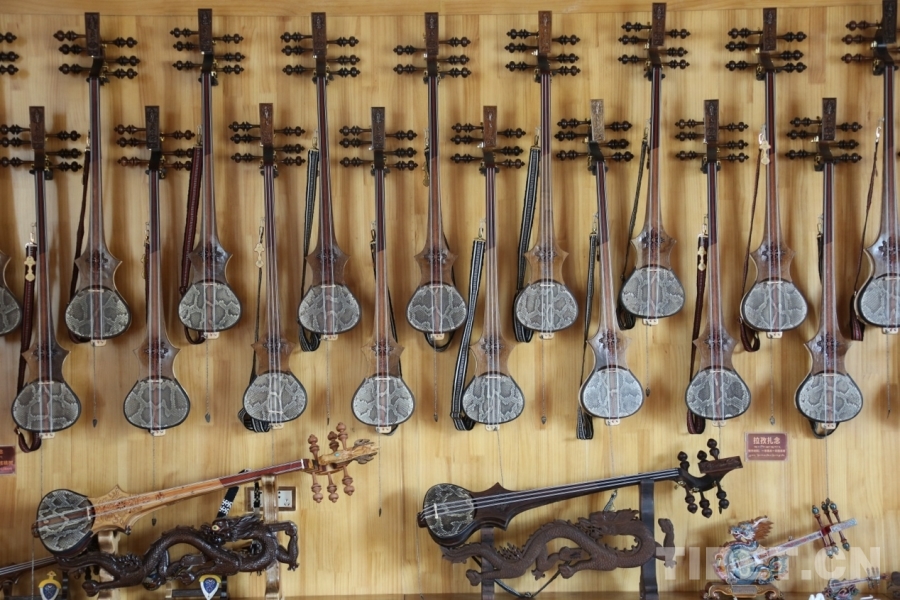 作為“堆諧之鄉(xiāng)”拉孜縣的代表性樂器,扎念琴制作已有數(shù)百年歷史。合作社負責人頓加介紹,一把純手工扎念琴需選用楊木做共鳴箱、花梨木制琴桿,經(jīng)過刨削、雕鏤、蒙皮等20余道工序,一個人耗時6天左右方能完成?!扒兕^雕馬象征吉祥,背面‘巴絡'凸紋既美觀又防滑,這些都是祖輩傳下的智慧。”如今,這項非遺技藝通過“致富帶頭人+合作社+農(nóng)戶”模式,年生產(chǎn)扎念琴超500把,帶動社員人均年收入達4.5萬元。