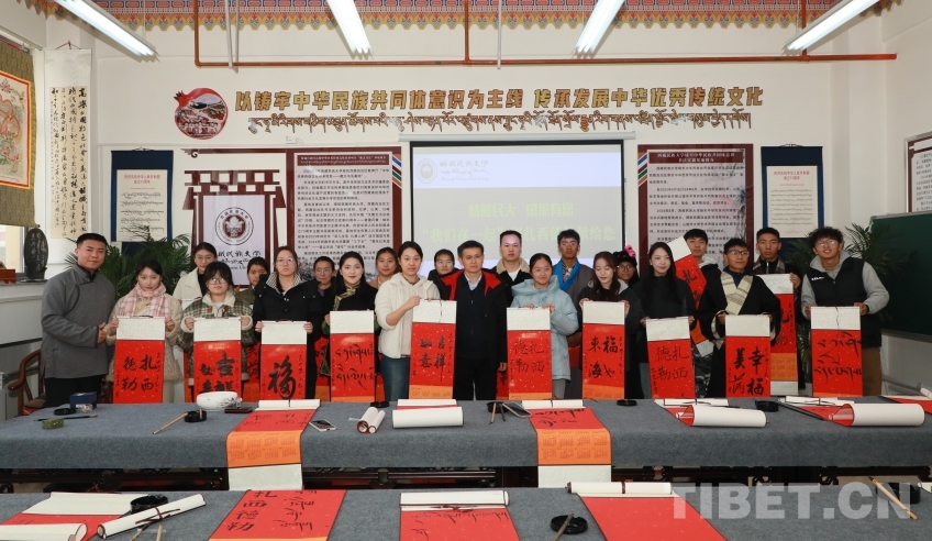 走進西藏民族大學社科樓里內的“鑄牢中華民族共同體意識書法實踐基地”,基地負責人扎西曲杰正帶領他的小伙伴書寫書法作品。指著一幅幅書法作品,扎西曲杰自豪地說,我們基地的各族學生用“寫”在一起的形式傳承中華優(yōu)秀傳統(tǒng)文化,推廣國家通用語言文字,助力中華民族共同體建設。