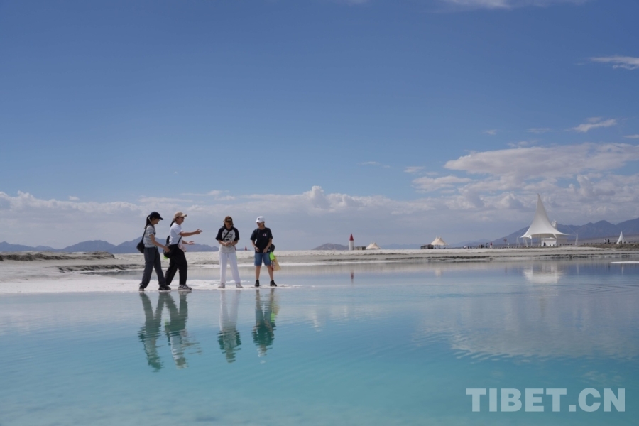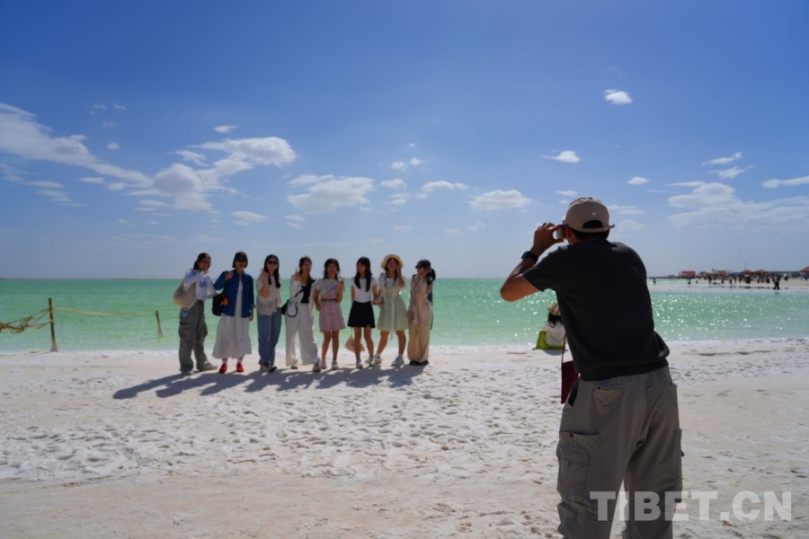 在海西蒙古族藏族自治州格爾木市,海拔2670米的察爾汗鹽湖,翠綠之美令人震撼,風(fēng)起波動(dòng),湖面如碎鉆鋪就的星河;天然形成的鹽花形態(tài)各異宛如珊瑚叢生,在陽(yáng)光下,閃耀著璀璨的光芒;浮在鹵水上的“萬(wàn)丈鹽橋”延伸至天際,橫跨湖面,還有周邊的現(xiàn)代化采鹽船,輸鹵管道,車(chē)來(lái)車(chē)往,工業(yè)設(shè)施與自然景觀形成強(qiáng)烈對(duì)比。來(lái)自妙法寺劉金龍中學(xué)三位女生欣賞著美景,也紛紛討論這次令人驚嘆的“自然課堂”。鐘澄情同學(xué)不自禁感慨:“這里跟網(wǎng)上宣傳的一樣美!就像是上帝打翻的蘋(píng)果汁。”曾婉晴同學(xué)驚嘆道:“曾經(jīng)我只聽(tīng)說(shuō)過(guò)茶卡鹽湖,來(lái)到這里才知道察爾汗鹽湖是中國(guó)最大、世界第二大的鹽湖,面積相當(dāng)于56個(gè)茶卡鹽湖,鹽儲(chǔ)量可以讓全球80億人吃上兩千年。”而許馨月同學(xué)更加震撼這里工業(yè)與自然相互交融的獨(dú)特魅力,直呼這是一座真正的“寶庫(kù)”!