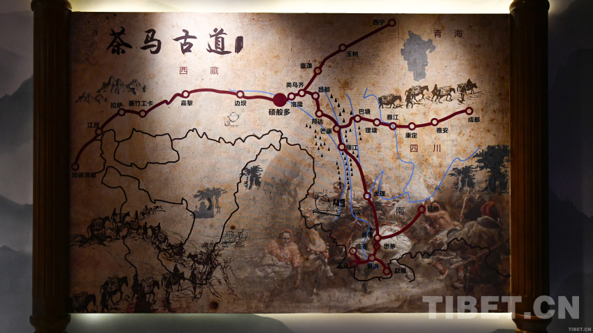 圖為碩督歷史文化展覽館內的茶馬古道示意圖,“碩般多”(碩督)處于重要位置 攝影:趙振宇