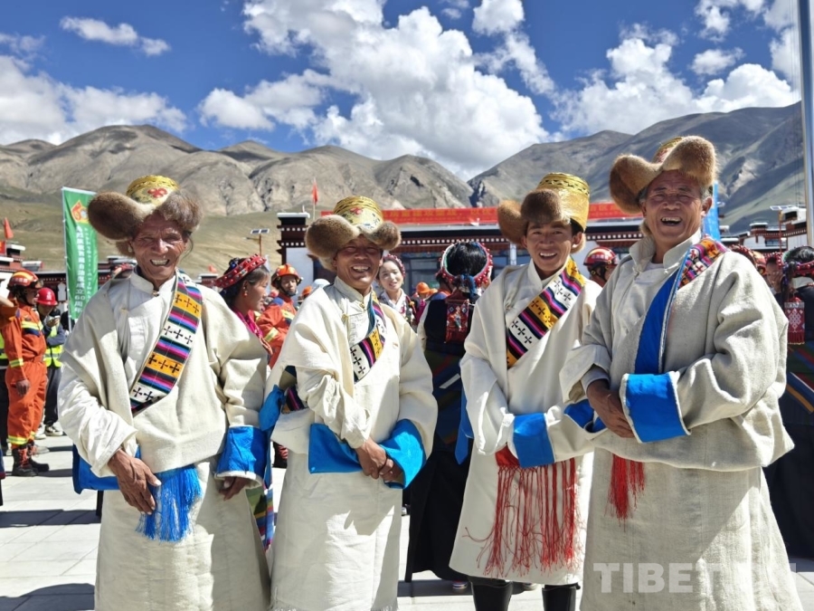 圖為儀式現(xiàn)場(chǎng),身著定日傳統(tǒng)服飾的村民正在合影留念