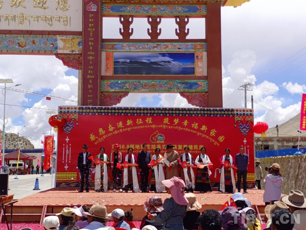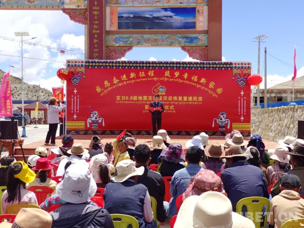 圖為榮貢村舉行定日6.8級地震災(zāi)后恢復(fù)重建民房首批入住儀式