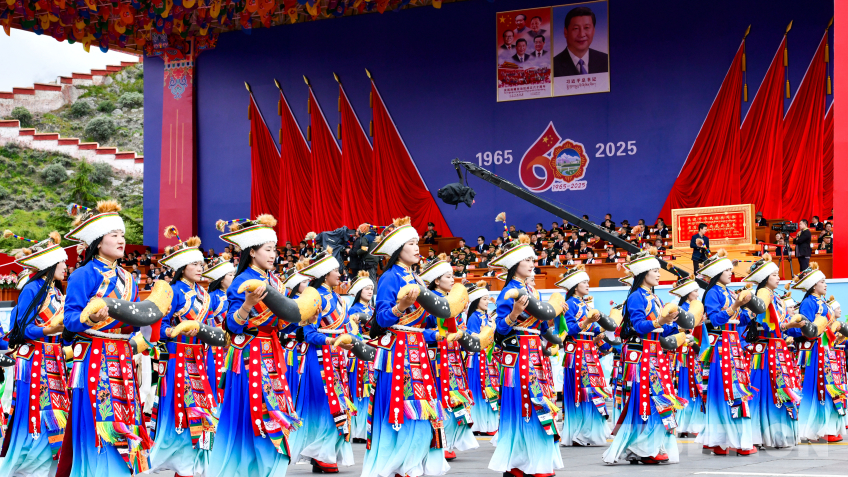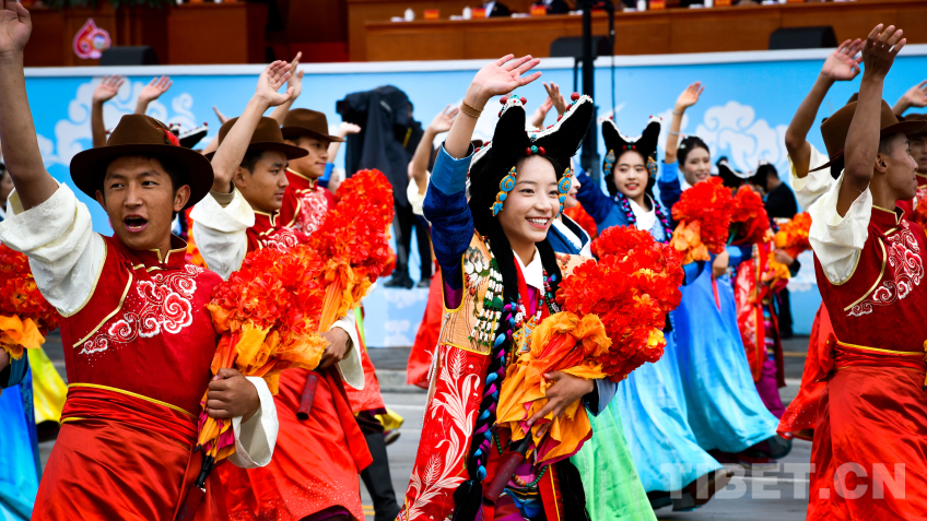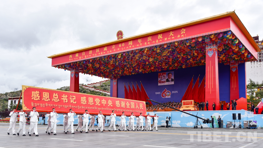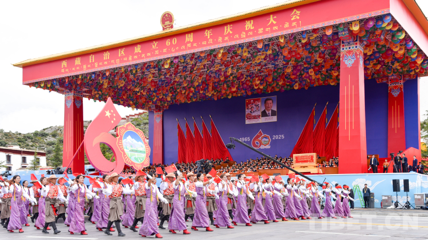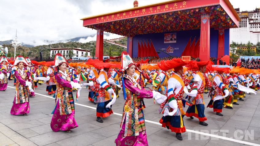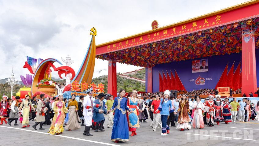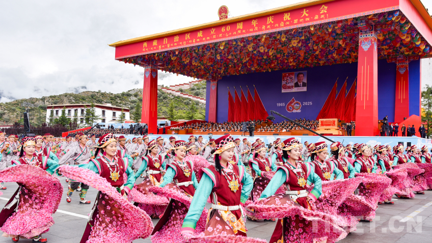 中國西藏網(wǎng)訊 8月21日上午,西藏自治區(qū)成立60周年慶祝大會在拉薩隆重舉行。慶祝大會舉行充滿吉祥喜慶氣氛的盛大群眾游行。游行分為“旗幟引領(lǐng)”“四件大事”“奮進(jìn)新時代”“走向未來”4個單元,26個群眾游行方隊(duì)、彩車,在歡快的音樂中依次行進(jìn)。各族群眾身著絢麗多彩的服飾,跳起熱情歡快的舞蹈,表達(dá)過上幸福生活的喜悅之情、對黨和國家的感恩之情。(中國西藏網(wǎng) 記者/王淑 趙振宇 德吉卓瑪 次旦拉姆 旦曲 賈華加 趙釗 姚浩然 劉莉 邊子捷 馮重霖 楊眉笑)