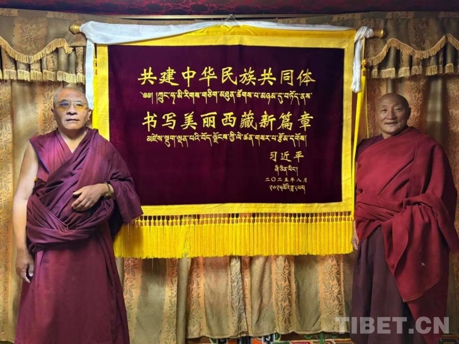 中央代表團(tuán)向孝登寺贈送了習(xí)近平總書記題詞的“共建中華民族共同體 書寫美麗西藏新篇章”賀幛。土登對此深有感觸:“‘共建中華民族共同體’意味著56個民族共同致力于中華民族的偉大夢想;‘書寫美麗西藏新篇章’是指西藏從1965至今發(fā)生巨變,我們正在此基礎(chǔ)上創(chuàng)造更美好的未來。”