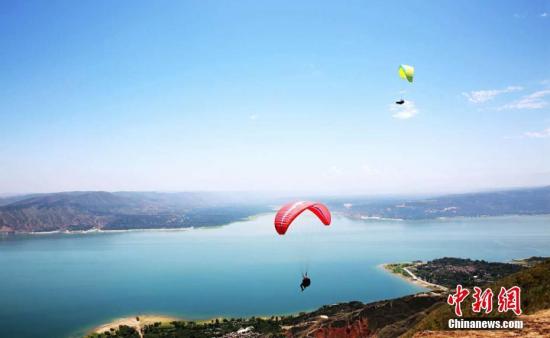 圖為游客體驗(yàn)高空滑翔傘。郭紅 攝