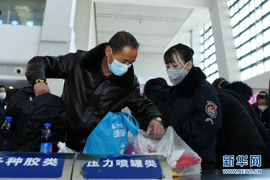 圖為西寧站內(nèi)正在維護秩序的保安。新華網(wǎng) 李俊 攝