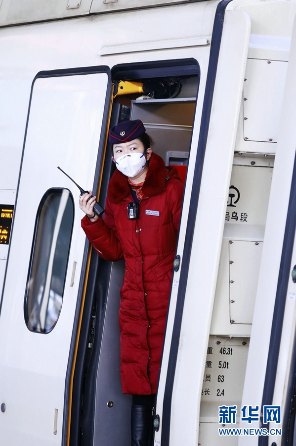 西寧客運段職工問詢旅客身體情況。新華網(wǎng) 郝寶君 攝