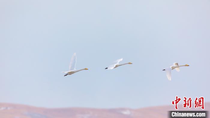 大天鵝翱翔在藍天?!∪魻柹w縣融媒體中心供圖 攝