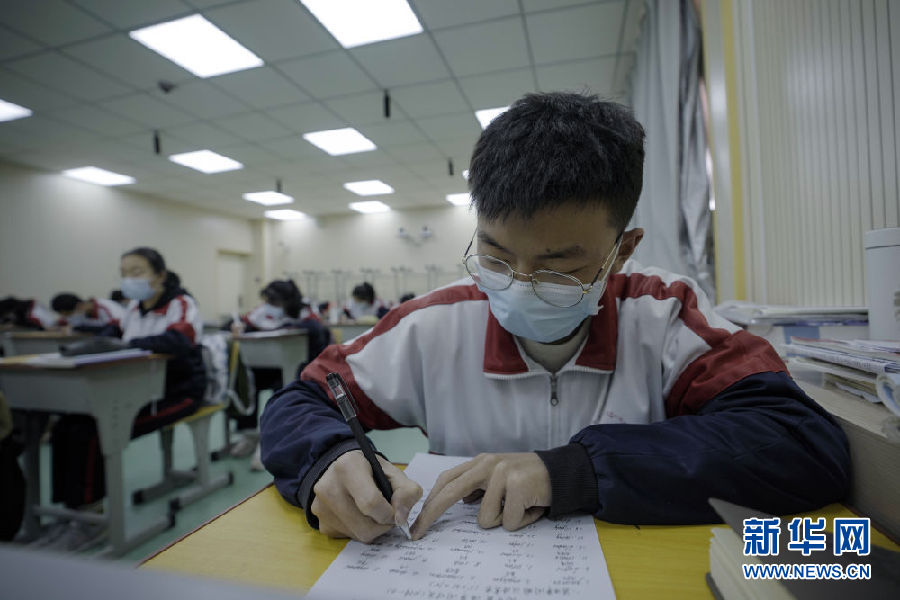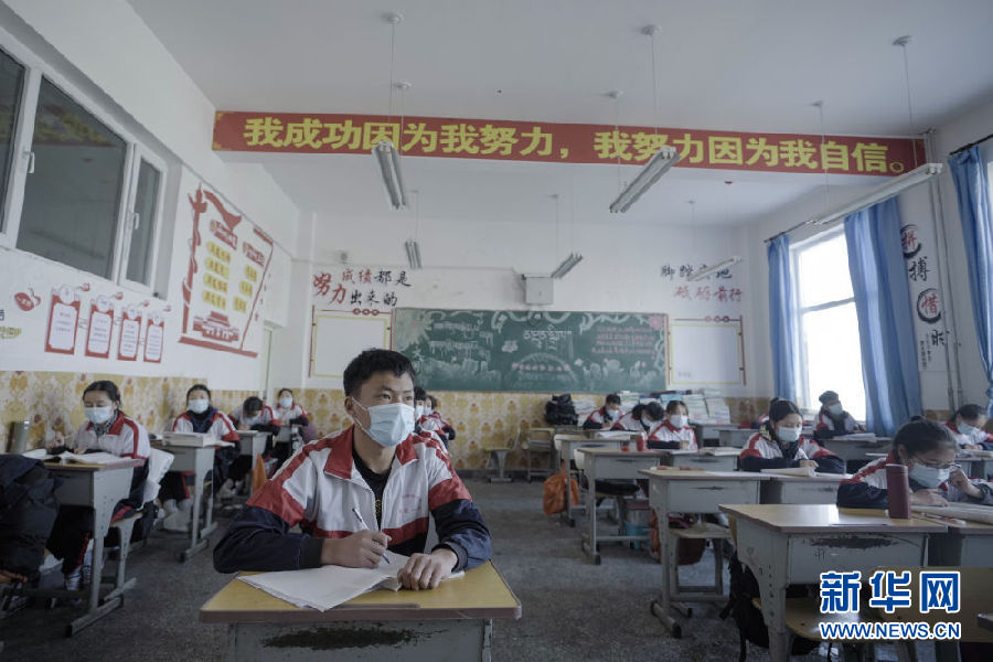 3月14日,海北州第一高級中學高三年級學生在教室內上課。新華社 吳剛 攝