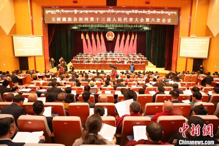 圖為青海省玉樹藏族自治州第十三屆人民代表大會第六次會議現(xiàn)場。 包利英 攝