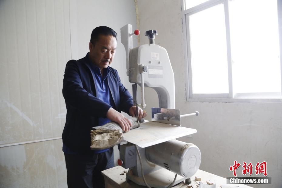 4月22日,青海省尖扎縣傳統(tǒng)牛角弓制作技藝代表性傳承人奧松多杰正在切割水牛角。當(dāng)日,在青海省尖扎縣,奧松多杰和徒弟們經(jīng)過(guò)切割,打磨水牛角和竹片、貼筋、繪圖等技藝,純手工制作出藏式傳統(tǒng)牛角弓。中新社記者 馬銘言 攝