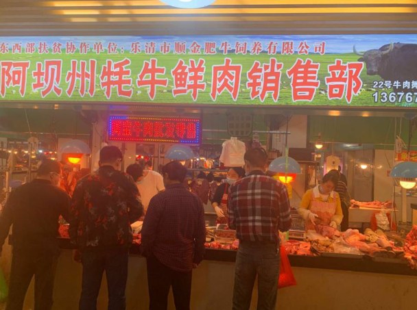 在東西部扶貧協(xié)作中,樂清市對口支援壤塘縣。“有一次,壤塘派人到樂清對接扶貧工作,提到了如何推進產(chǎn)業(yè)扶貧。壤塘牦牛資源比較豐富,雙方就談到了搭建牦牛銷售渠道和平臺?!比捞量h經(jīng)濟商務和信息化局局長樊興建談到“西牛東送”項目最初的構想時說。