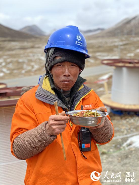 事實上,這些電力建設(shè)者都是“外地人”,剛來時也和記者一樣高原反應(yīng)嚴重,表現(xiàn)就是干點活就氣喘吁吁,夜里睡不著覺?!疤稍趲づ窭锓瓉砀踩?,頭疼、沒電、手機也沒信號,聽著遠處的狼叫聲音和呼呼的風(fēng)聲,那感覺確實不好受。”工程項目經(jīng)理曾繼波介紹。無法忍受惡劣的環(huán)境,施工隊不停的有人走,然后新的一批人再補充上來。“剩下的就是精兵強將了!”
