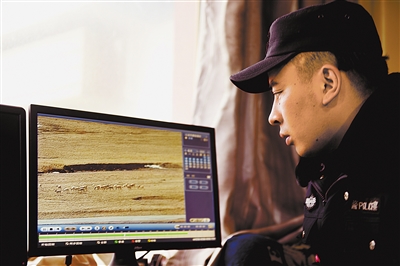 五道梁保護(hù)站民警德尕,正目不轉(zhuǎn)睛地關(guān)注著藏羚羊在通過青藏公路前的活動(dòng)情況。