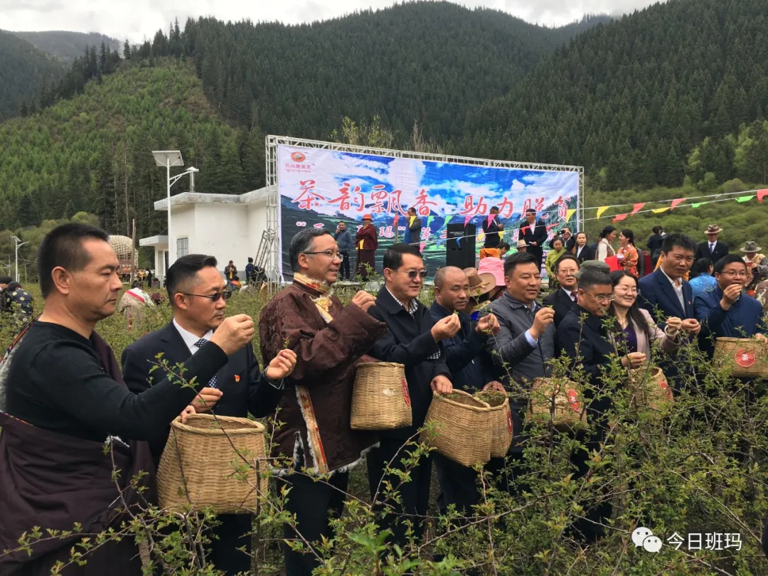 六月的班瑪大地生機(jī)勃發(fā)、草木欣榮,美麗的瑪可河畔碧波蕩漾、茶韻飄香。6月6日,在首個(gè)“國際茶日”剛剛過去不久,由中共班瑪縣委、班瑪縣人民政府、青海省瑪可河林業(yè)局主辦,中共班瑪縣委宣傳部、班瑪縣文體旅游廣電局、班瑪縣林業(yè)和草原局、班瑪縣扶貧開發(fā)局、班瑪縣藏雪茶產(chǎn)業(yè)開發(fā)有限責(zé)任公司承辦的“三色班瑪”第二屆藏雪茶采摘節(jié),在省瑪可河林業(yè)局院內(nèi)熱烈舉行。在縣副縣級(jí)以上領(lǐng)導(dǎo)干部,各鄉(xiāng)鎮(zhèn)黨委書記、鄉(xiāng)鎮(zhèn)長,縣級(jí)各部門各單位負(fù)責(zé)人,瑪可河林業(yè)局干部職工,各村黨支部書記和燈塔鄉(xiāng)廣大牧民群眾參加了活動(dòng)?;顒?dòng)特別邀請(qǐng)毗鄰的四川省壤塘縣縣委常委、宣傳部部長孫???,壤塘縣人民政府副縣長孫宏斌參加??h委常委、縣政府常務(wù)副縣長韓尚軍主持活動(dòng)。省瑪可河林業(yè)局黨委書記韓才邦宣布“三色班瑪”第二屆藏雪茶采摘節(jié)開幕。