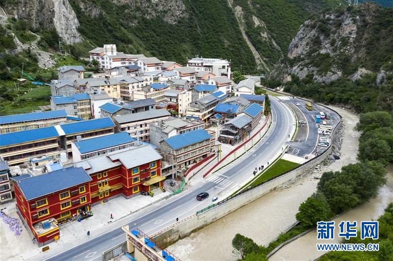 九寨溝地震震中九寨溝縣漳扎鎮(zhèn)新貌(無(wú)人機(jī)照片,6月18日攝)。 新華社記者 劉坤 攝