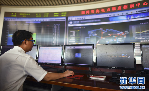 國家電網(wǎng)青海電力公司調度控制中心一名工作人員在查看發(fā)電實時數(shù)據(jù)(2019年6月12日攝)。新華社記者 張宏祥 攝