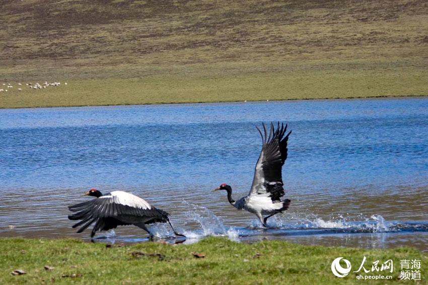 2019年首批黑頸鶴遷抵青海玉樹(shù)嘉塘草原