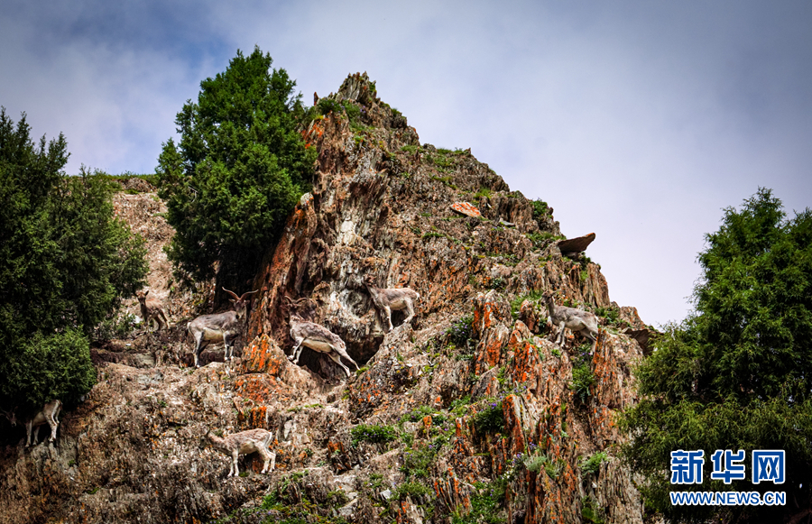 一群巖羊在巖壁上嬉戲。新華網(wǎng) 宋忠勇 攝