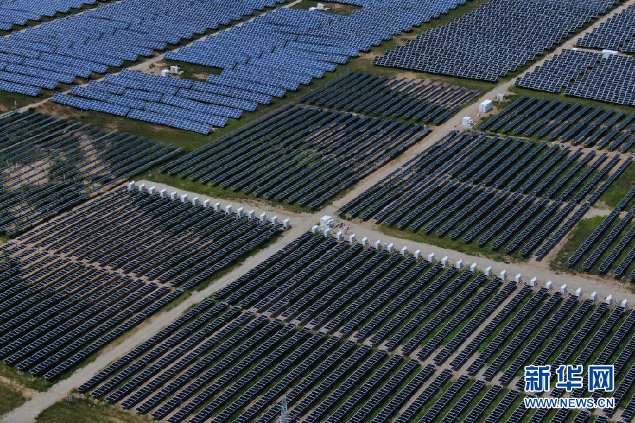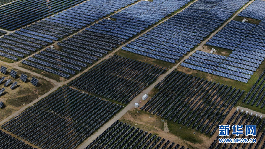 這是8月17日在青海省海南藏族自治州共和縣塔拉灘綠色產(chǎn)業(yè)發(fā)展園區(qū)拍攝的光伏電站(無人機照片)。新華社記者 張龍 攝
