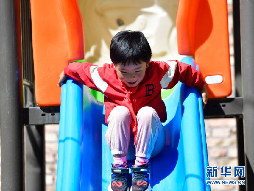 8月31日,在來(lái)塘村學(xué)校,一年級(jí)學(xué)生馬秀梅在課間玩耍。新華社記者 張龍 攝