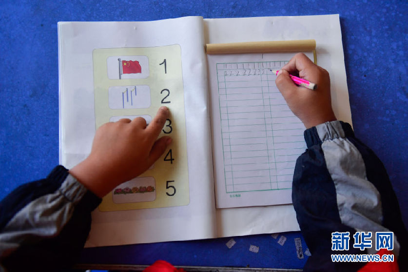 8月31日,在來(lái)塘村學(xué)校,一年級(jí)學(xué)生馬良在學(xué)習(xí)。新華社記者 張龍 攝