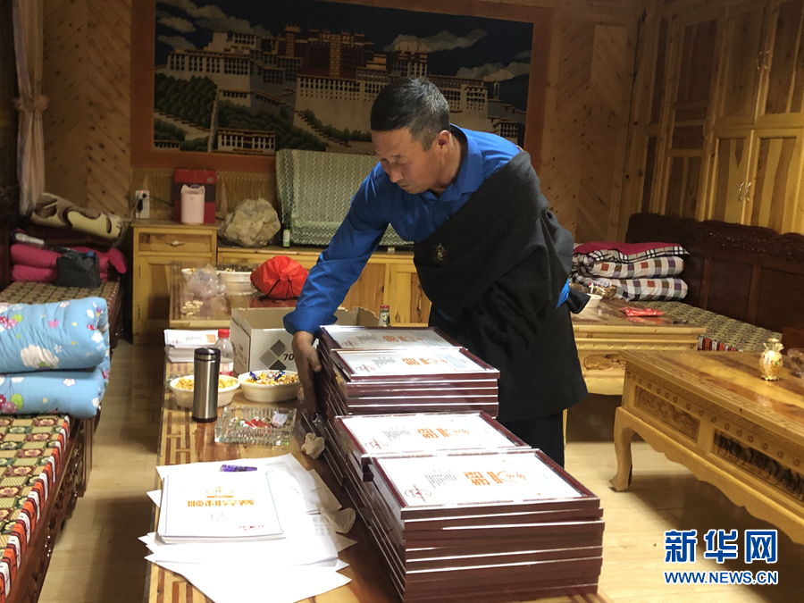 村民才保在家中整理運(yùn)動(dòng)員完賽證書。新華網(wǎng) 魚昊 攝