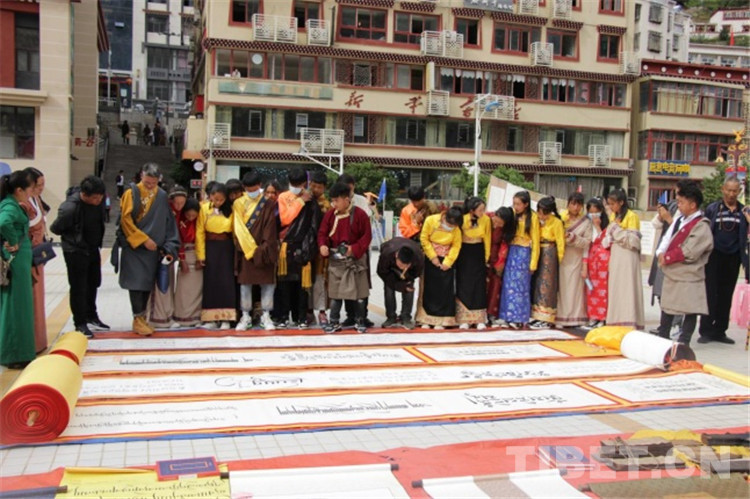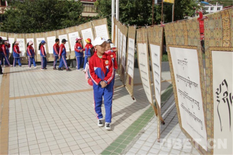 中國西藏網(wǎng)訊 9月25日,四川省甘孜藏族自治州得榮縣“喜迎建州70周年?首屆藏文書法展覽活動(dòng)”開幕。書法愛好者、農(nóng)牧民群眾、中小學(xué)生、僧尼等近1000余人在書法長(zhǎng)卷、古籍前駐足學(xué)習(xí)、拍照。