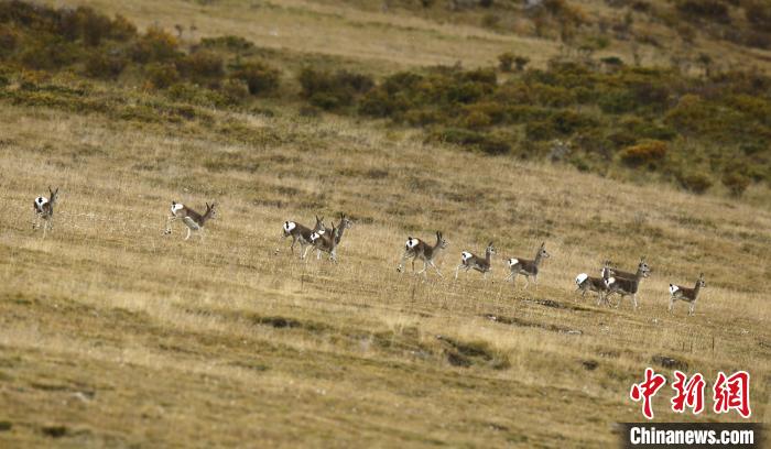 圖為臀部呈白色桃心的藏原羚排隊(duì)奔跑。三江源國家公園森林公安局 供圖