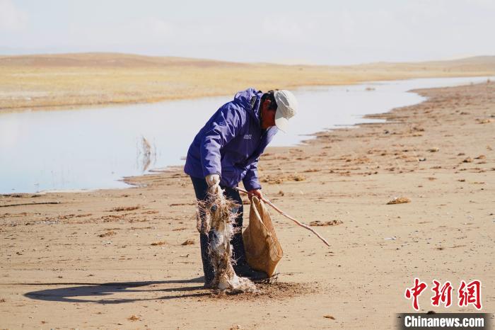 青海湖國家級自然保護(hù)區(qū)管理局的工作人員在野外進(jìn)行監(jiān)測(2019年9月23日攝)。新華社 李琳海 攝
