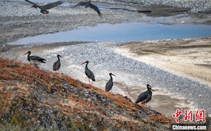 四川爐霍:遷徙的100多只黑鸛現身濕地公園