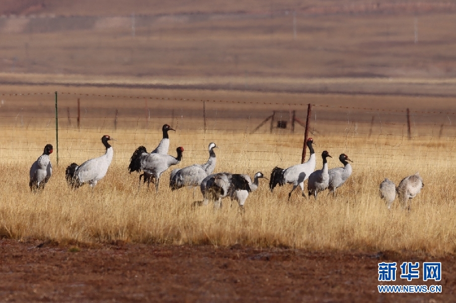 集群黑頸鶴和灰鶴。新華網(wǎng)發(fā)